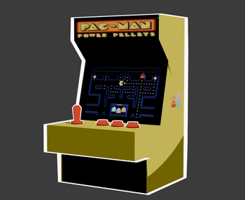 The arcade machine was made in Blender along with it's spinning animation. I was going for a toon style similar to Legend of Zelda Wind Waker, hence the cell shading.